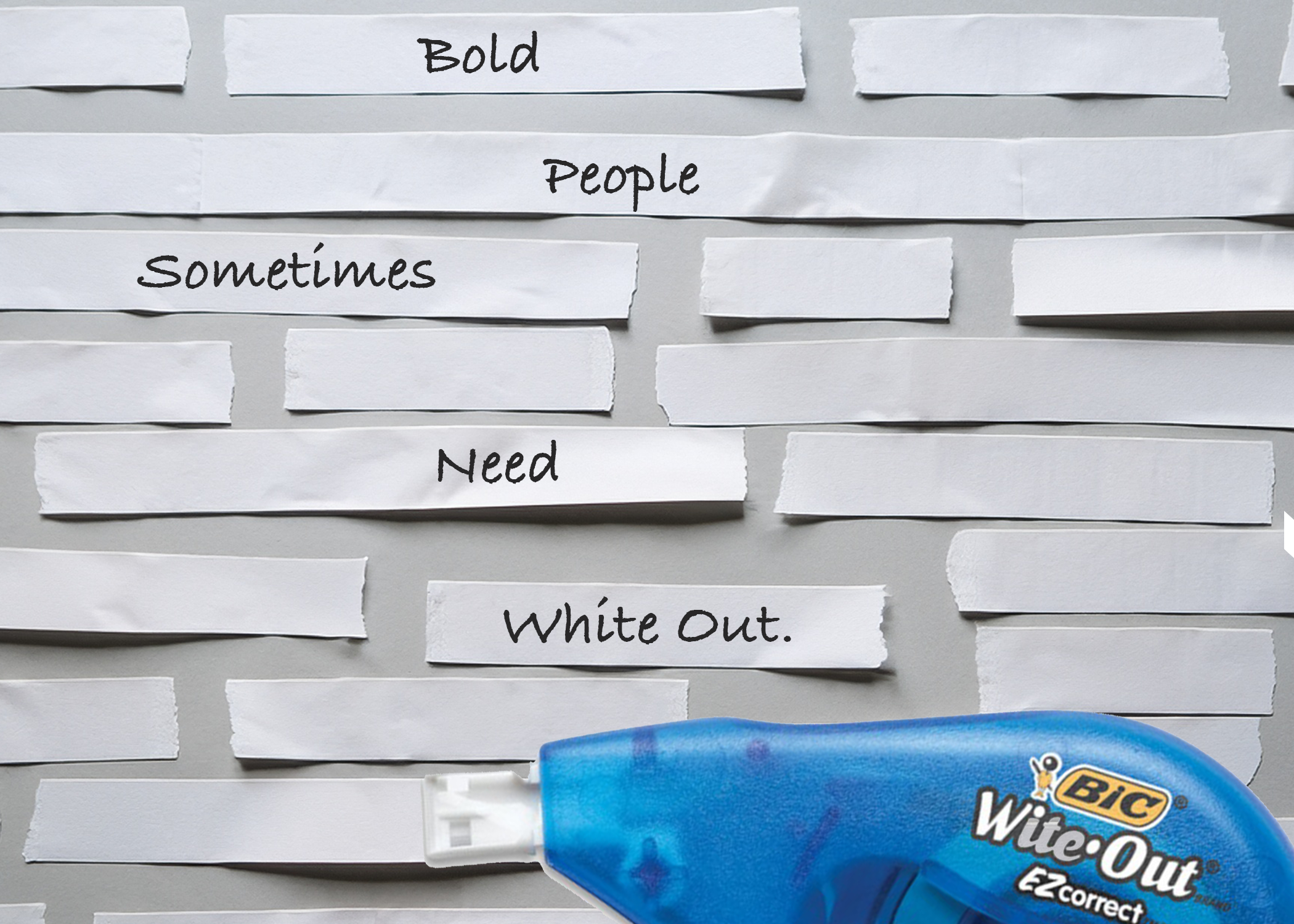 For bold people who make mistakes, BIC White-Out fixes at least the ones on paper.