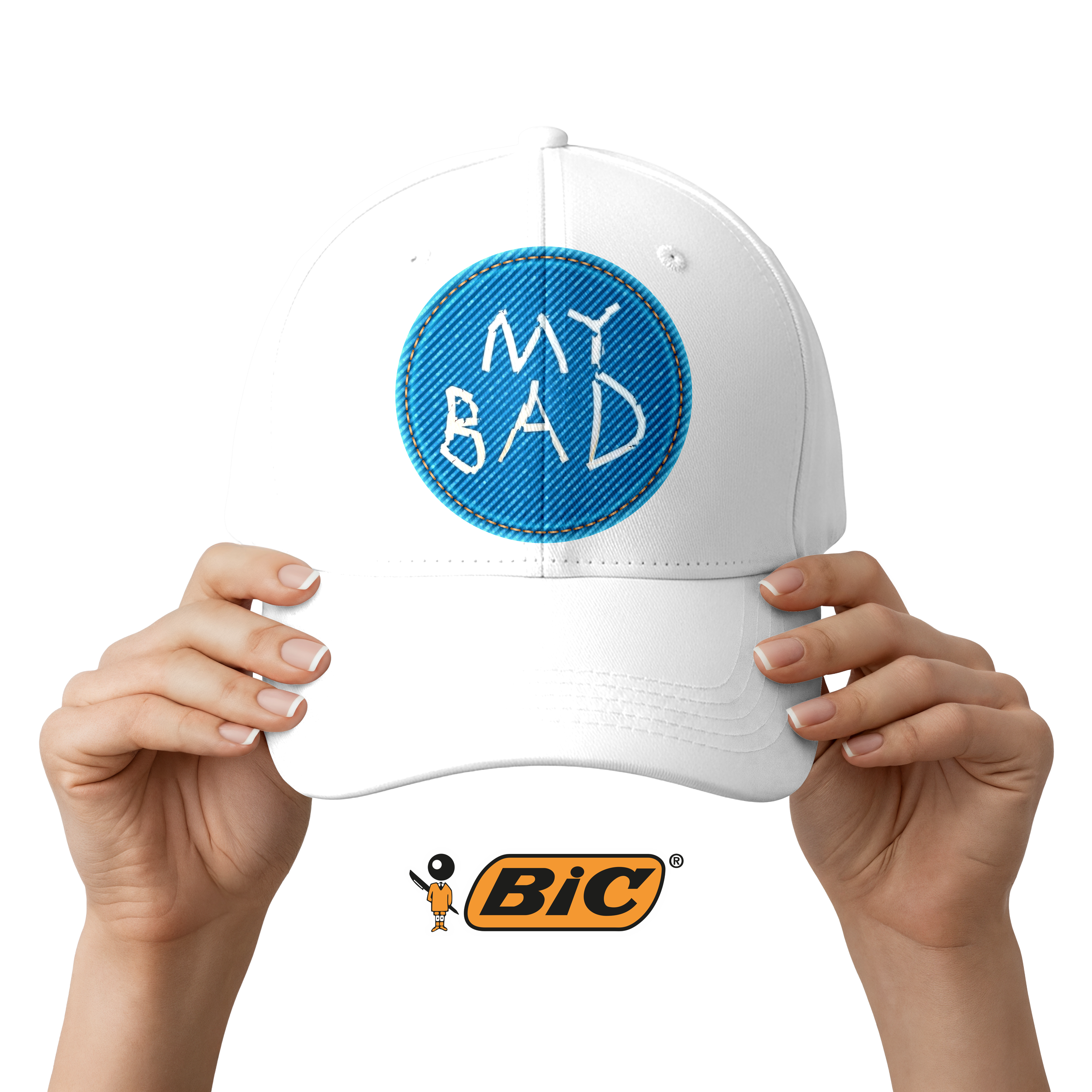 The campaign extends into limited merch: BIC-branded hats, sweatshirts, and accessories where White-Out tape lettering becomes the design itself. Not a logo. A statement.
